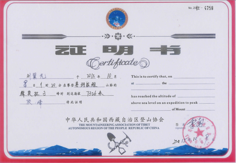 繼2014年10月上海華鳴報關(guān)有限公司舉辦“轉(zhuǎn)變提升,勇攀高峰” 登頂卓奧友峰活動后,今年上海華鳴報關(guān)有限公司再有新突破:于2015年10月9日 11 時 20分,再次登上了海拔7034米,位于東經(jīng)89.2度,北緯27.8度,屬于喜馬拉雅山脈中段的卓拉木日康峰。